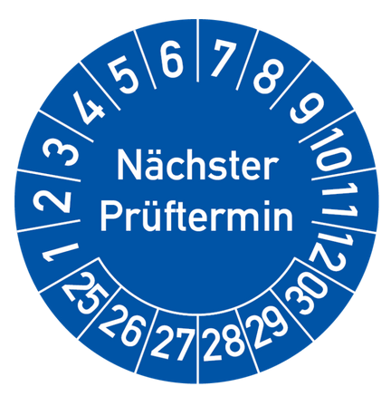 Nächster Prüftermin Prüfplakette – 30 mm Ø, Blau